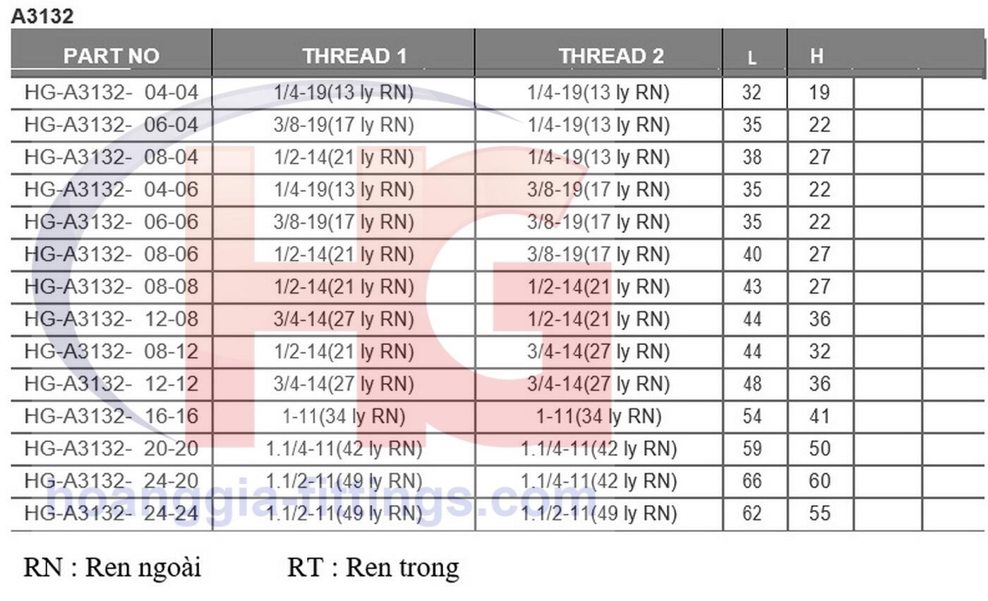 ĐẦU NỐI THẲNG (1 ĐẦU BẰNG 1 ĐẦU LÕM)